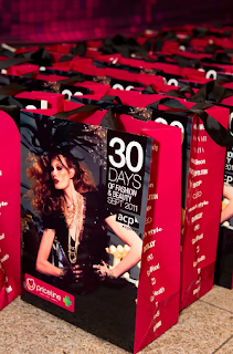 30 Days of Fashion & Beauty @ Friday, September 16, 2011 As a part of the '30 Days of Fashion & Beauty' Yearly Event, we went to an event XD. They're hosted by fashion magazines and had some demonstrations of incorporating catwalk/editorial into every day, did your make-up, give advice and things like that and gave away magazines. I was reading an article by Genelle, a 7/11 survivor who was trapped from 23hr under rubble, and on top of a fireman (he died) who was trying to help everyone. :( And I got that chill that you get when you feel freaked out. I was very tempted to get my face done, but didn't cause I'm allergic to the unknown (possibly) and I was in uniform (private colleges have uniforms, and according to the rules if you get caught e.g. someone took a picture, doing something wrong e.g. wearing MU, in uniform you'll be in detention.) The best part of the event was gift bags or as everyone else calls them "goodie bags". I LOVE these bags ^^, and have gotten one a few years ago when I went to a premier of 'The Devil Wears Prada' (I'm not counting the bags you get with magazines sometimes and the ones you get from career expos). A lot of events for the first 50 that show up (with registration) received these bags. Next year I do plan on going to more of them ^^. Here are a couple of what other people received. Pandora was a sponsor of the events and donated things, there was an event where girls got rings, and one in the picture, of something unknown - but nevertheless Pandora! 1. Sophia from Everyday Like This 2. The Concealer 3. Elisa from Elisa Bianchini 3. Lovely Lighting, (ignore the glare from light).